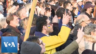 Ukrainian National Anthem Sung at Paris Rally