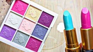 clear slime Eyeshadow!satisfying slime colouring with makeup mixing lipstick💄&lipbalm!#ASMR